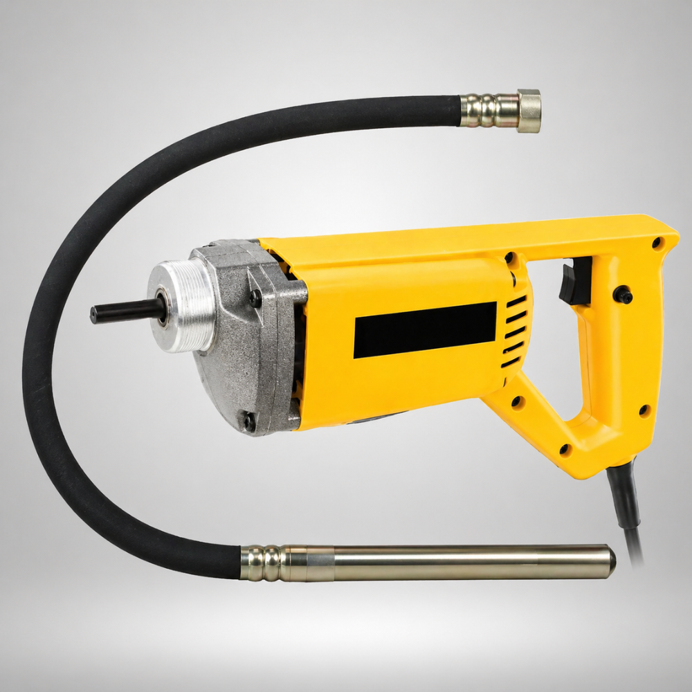 A concrete vibrator is an essential construction tool used to remove air bubbles from freshly poured concrete, ensuring proper compaction and strength. It helps achieve a smooth, dense, and durable finish by evenly distributing the concrete mix. These machines are available in electric, petrol, and diesel variants, making them suitable for different site conditions. Their efficient vibration mechanism improves structural integrity and reduces the chances of cracks or weak spots.
