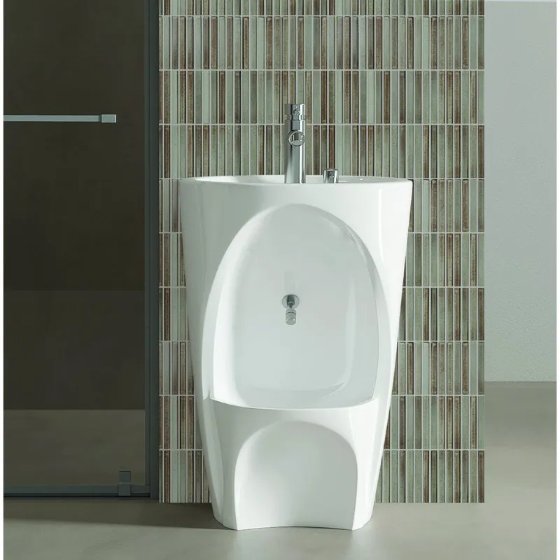 This dual-purpose design is ideal for maintaining hygiene, especially in areas where frequent washing is required. Made from high-quality ceramic or solid surface materials, it offers durability, smooth finish, and resistance to stains and moisture. Such integrated basins are commonly used in modern bathrooms, wudu areas, and premium spaces for enhanced usability.