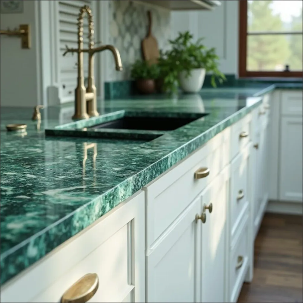 Highly durable and resistant to scratches, heat, and moisture, green granite is perfect for high-traffic and heavy-use areas. Its polished finish provides a smooth, glossy surface, ensuring long-lasting performance with minimal maintenance.