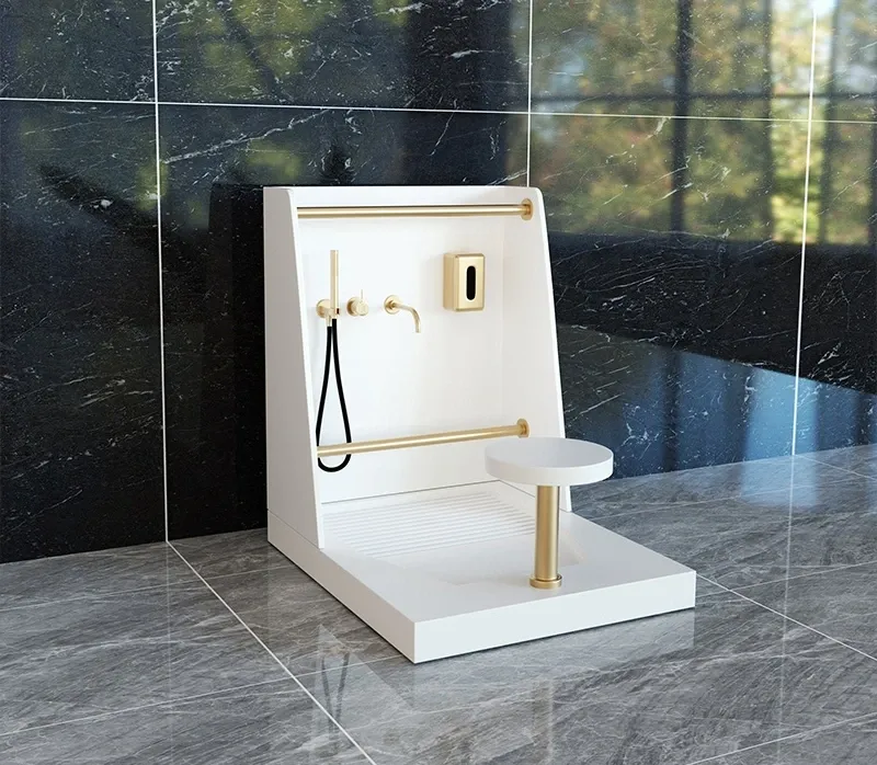 The Seated Wudu Wash Basin is a specially designed ablution unit that allows users to perform wudu comfortably in a seated position. It integrates a basin, seating area, and foot-wash space to ensure convenience, hygiene, and ease of use.